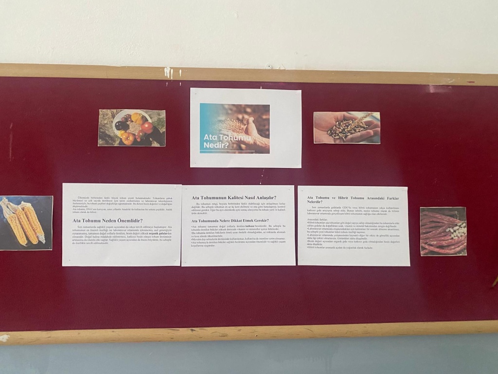 Etkinlik Din Kültürü ve Ahlak Bilgisi öğretmenleri tarafından okulumuz öğrencileri katılımıyla yapıldı. Etkinlikte Tohum ve özellikle Ata Tohumu teması işlendi. Okulumuzda ÇEDES projesi kapsamında oluşturulan bahçe ziyaret edilip öğrencilere yerinde inceleme imkanı sunulup, elde edilen tohumlar toprakla buluşturulmak üzere muhafaza altına alındı.